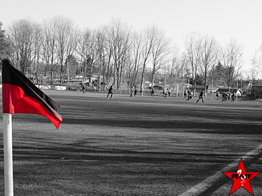 Die Mobi zur Choreo klappte erstaunlich gut, rund 25-30 Fans standen eine halbe Stunde vorm Anpfiff bereit. Die Absprache wer „Chef“ spielt, wer hält, wer wedelt, wer feuert lieft unkompliziert ab. Nach dem üblichen Einlauf und einer Gedenkminute konnte es losgehen.