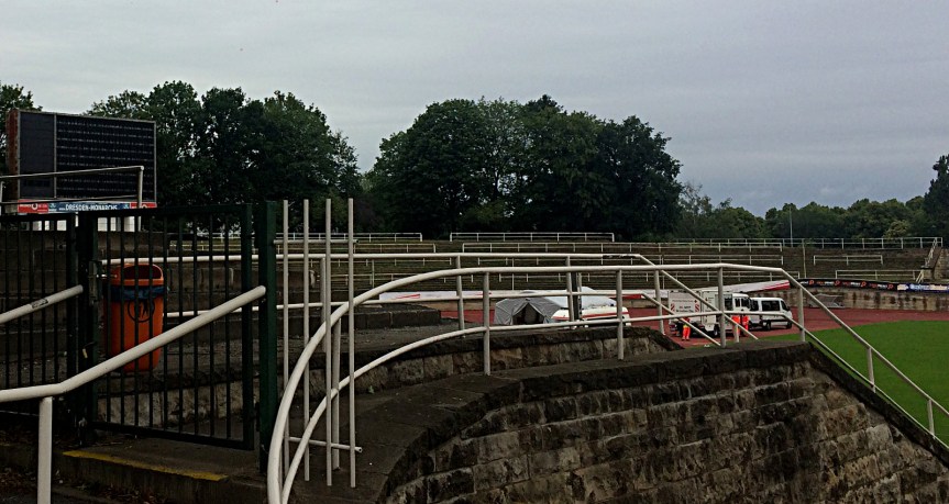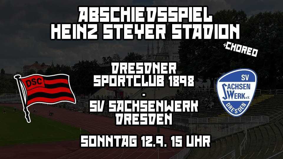 so hieß es also, „ab zum dsc“, so lange es noch geht, oder hätt‘ ich schreiben sollen: so lange es noch steht? genau! denn mal abgesehn von dem umstand, dass aufgrund von covid19 bald wieder schluss sein könnte mit diesem ulkigen hobby, ist da der umstand zu berücksichtigen, dass das 1919 eingeweihte heinz steyer stadion in kürze „modernisiert“ wird. modernisiert ist so ein herrlich trügerisches wort. im falle des dsc grounds heißt es nix geringeres als: abriss und neubau der restlichen tribünen (https://dresdner-sc.de/verein/stadion/). vor sechs, sieben jahren wurde schon angefangen damit und 2017 die neue nordtribüne eingeweiht. warum ich das jetzt so negativ formuliere? die meisten neubauten sind seelenlose, sterile und meist fanfeindliche orte. ob das in diesem fall auch so sein wird? schaut euch die entwürfe an, warten wir es ab. mit abgerissen wird die epochale anzeigentafel, welche sich der ddr staat über eine millionen ostmark kosten lassen hatte. erbaut, damit seine über 10.000 lämpchen die weltrekorde auch gebührend anzeigten. auf einer fläche von 17,2 meter breite und 8,28 meter höhe, bei 2,5 meter tiefe. übrigens gebaut durch die ungarischen genoss*innen von elektroimpex budapest (welche auch das olimpico in rom ausstatteten). angesteuert und mit informationen versorgt wurde die tafel mittels eines rechners. dieser befand sich auf der 150 luftmeter entfernten haupttribüne. so weit der heutige ausflug in die historie dieses spannenden ortes.