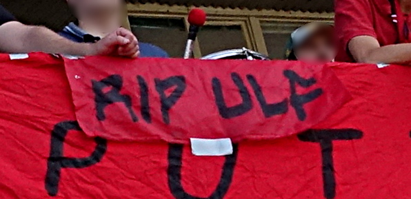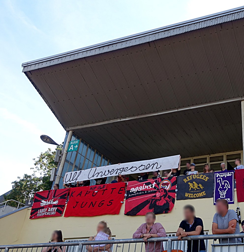 ihr kennt das sicher: ihr hoppt seit jahren zu bestimmten vereinen, welche ihr aus irgendwelchen gründen in euer herz geschlossen habt. diese „gründe“ sind meist auch verknüpft mit ganz bestimmten menschen. oft sind es die menschen, die euch da als erstes in positivem kontext begegnet sind. mit denen ihr dann im anschluss an mitreißende „90 minuten“ noch eine nicht weniger mitreißende nacht in den spelunken der stadt verlebt habt. „gegenbesuche“ planend, freundschatfsspiele erträumend, gemeinsame choreos brainstormend, schals tauschend, die neue freundschaft betrinkend… . schnell vergehen 10 jahre… . aus träumen wird realität, freundschaftsspiele werden umgesetzt, gemeinsame choreos gerockt und sich immer wieder zur begrüßung strahlend in die augen geschaut und herzlich umarmt. heute war das leider anders. ruhe in frieden, lieber ulf!