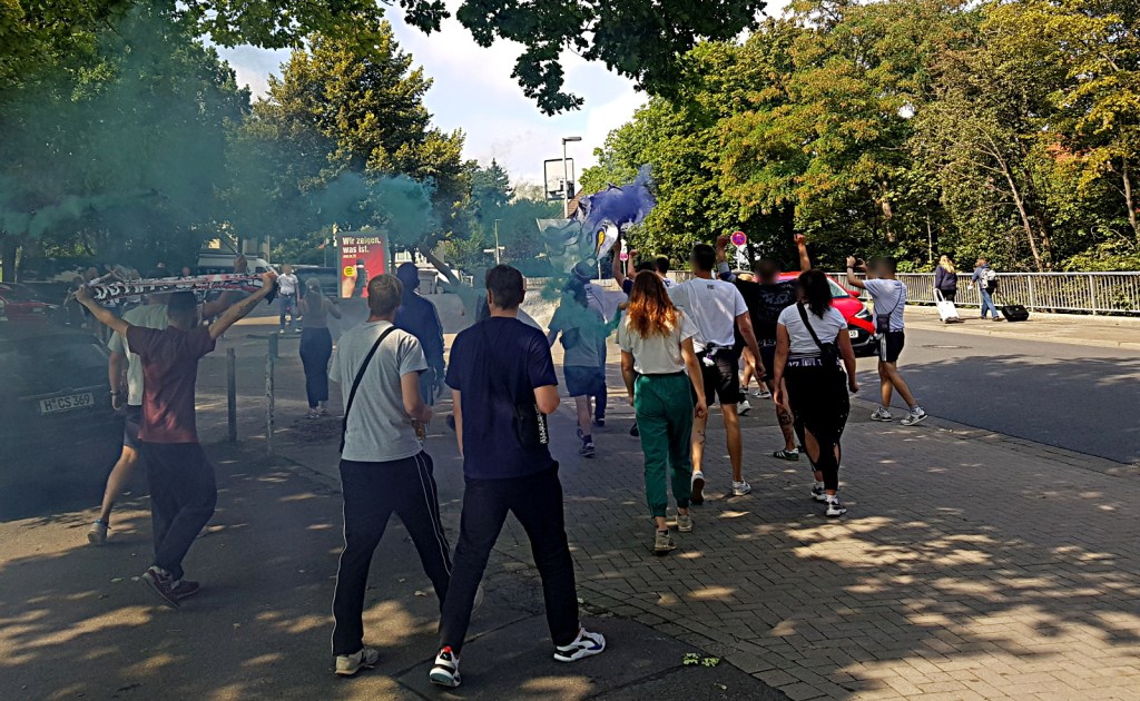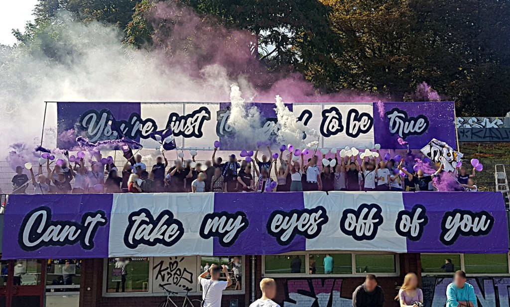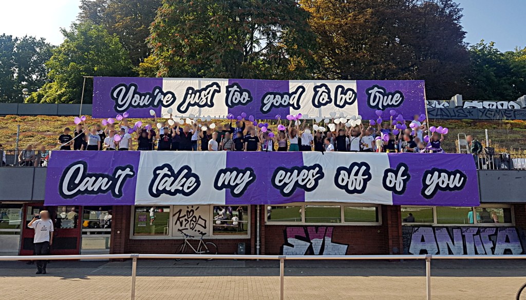 2 Gedanken zu „demonstrativ am lila weißen tisch – eine fahrt zur fanszene 1907“