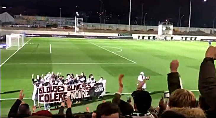 stimmung, lautstärke und mitmachquote sind am ehesten mit der südkurve am millerntor zu vergleichen. die „red star fans“ peitschten ihr team nach vorne, inbrünstig und mit einer leidenschaft, die selbst mir hinundwieder zu viel wurde 🙂 . das team auf dem rasen gab davon leider wenig zurück. mal abgesehen von 15 minuten und einer kurzen drangphase, boten sie einen traurigen anblick. fehlpässe en masse, fehlende übersicht und immer wieder katastrophale fehler. nachdem der auch eher schlecht aufspielende, nicht unbedingt mit viel talent gesegnete gegner aus châteauroux das 2:0 schoss, entlud sich der frust der bisherigen, grauenhaften saison. transpis wurden eingezogen, support wurde eingestellt und es herrschte eine sehr giftige stimmung. eigentlich wollte der verein wieder in die ligue 2 zurückkehren, stattdessen dümpelt er in der unteren tabellenhälfte rum und steht nun sogar auf einen abstiegsplatz. dazu herrscht bei einigen fans auch großer frust wegen des stadionumbaus.
