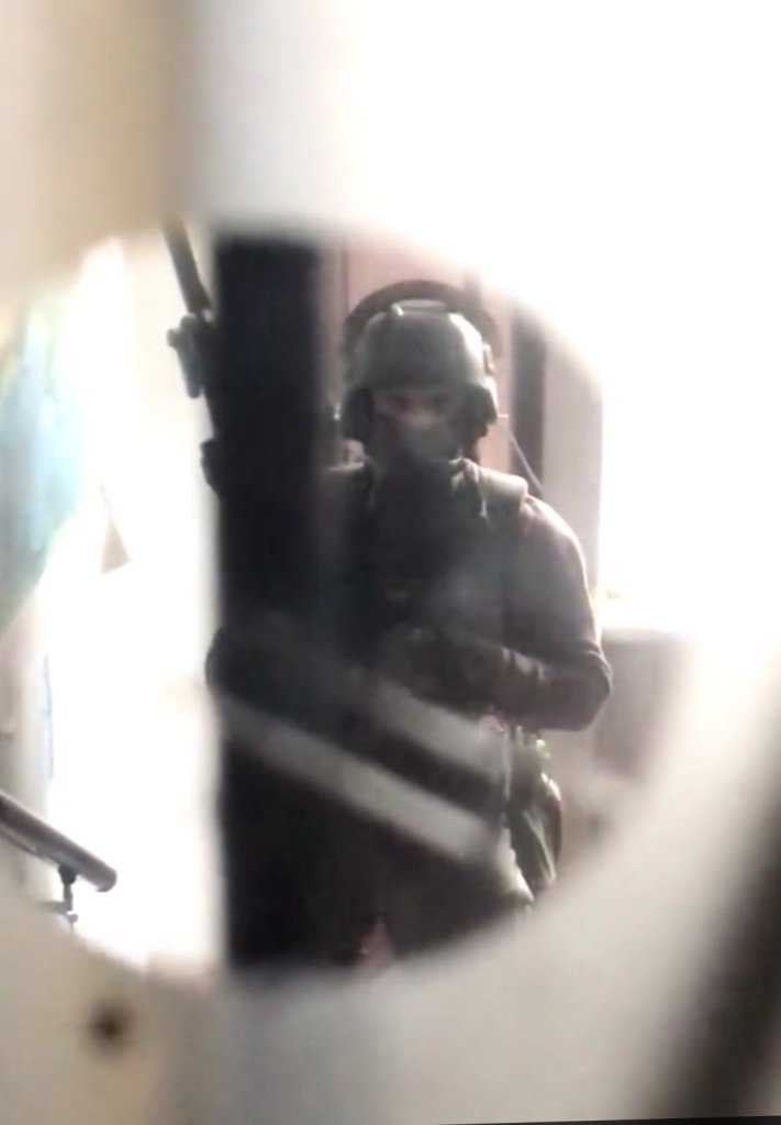 Kurz vor 17:00 Uhr wird eine zweite Wohnung in unserem Haus vom SEK gestürmt. Darin halten sich zwei Bewohner auf, was die Polizei auch weiß. Denn 40 Minuten zuvor wird ein Bewohner zurück in die Wohnung geschickt, als er im Hausflur nachsehen will, woher die Explosionsgeräusche stammen. Dennoch schießt das SEK mit einer Art Spezialmunition die Türe auf, angekündigt mit den Worten: „Polizei! Weg von der Türe! Ich schieße!“ – es folgen sechs bis acht Schüsse. Der erste Bewohner wird zu Fall gebracht, während sich der andere Bewohner vorsorglich auf den Boden legt, um Verletzungen zu vermeiden. SEK-Beamte kommen mit Schild und Maschinengewehr in die Wohnung, wobei sie Atemschutzmasken tragen. Beide Bewohner werden in ihren Zimmern mit Kabelbindern gefesselt und auf dem Boden liegen gelassen. Nach etwa 45 Minuten erscheint eine LKA-Beamtin, lässt die Handfesseln lösen und eröffnet, dass die Durchsuchungsmaßnahmen darauf abzielen, eine gesuchte Person aufzufinden. Es gäbe Hinweise, dass diese sich in dieser Wohnung aufhielte. Wer die gesuchte Person sei, wird bis heute geheim gehalten.