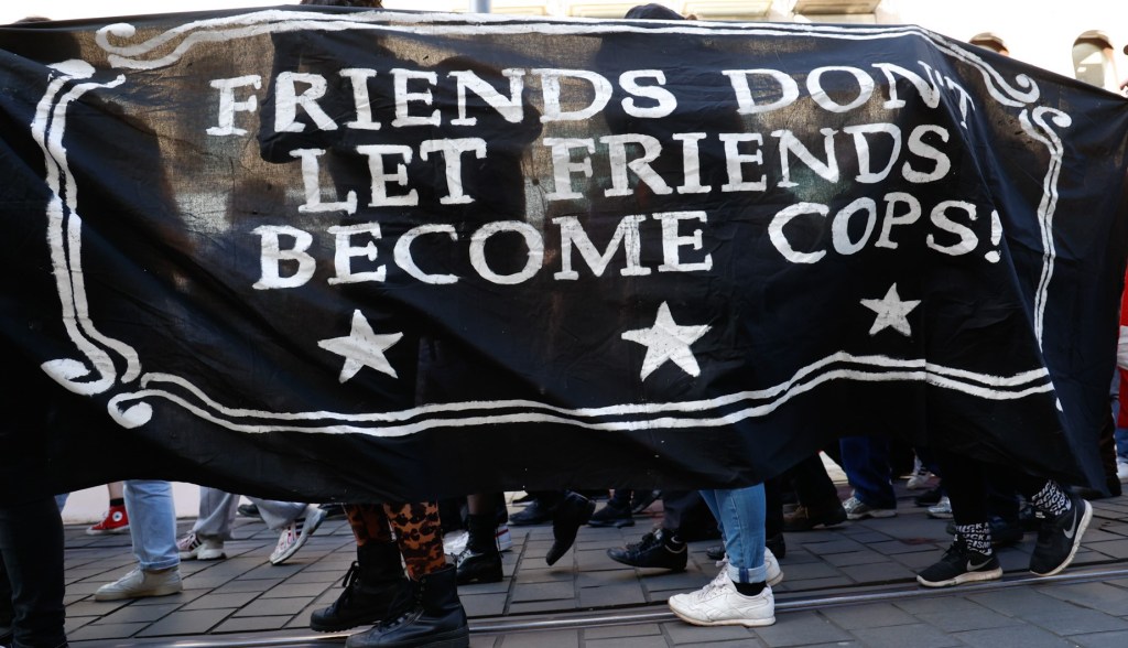 Ein Polizist sei im Übrigen leicht verletzt worden. Vermutlich den Finger am Abzug eingeklemmt, während des Versuchs einer Gruppenhinrichtung eines 19-jährigen migrantisch aussehenden Mannes. Welcher ohne Führerschein fuhr und ohne Licht und deswegen den Rest seines Lebens im Rollstuhl verbringen wird, „glückllich“ nicht von einer von den mind. 30 Kugeln ermordet worden zu sein.